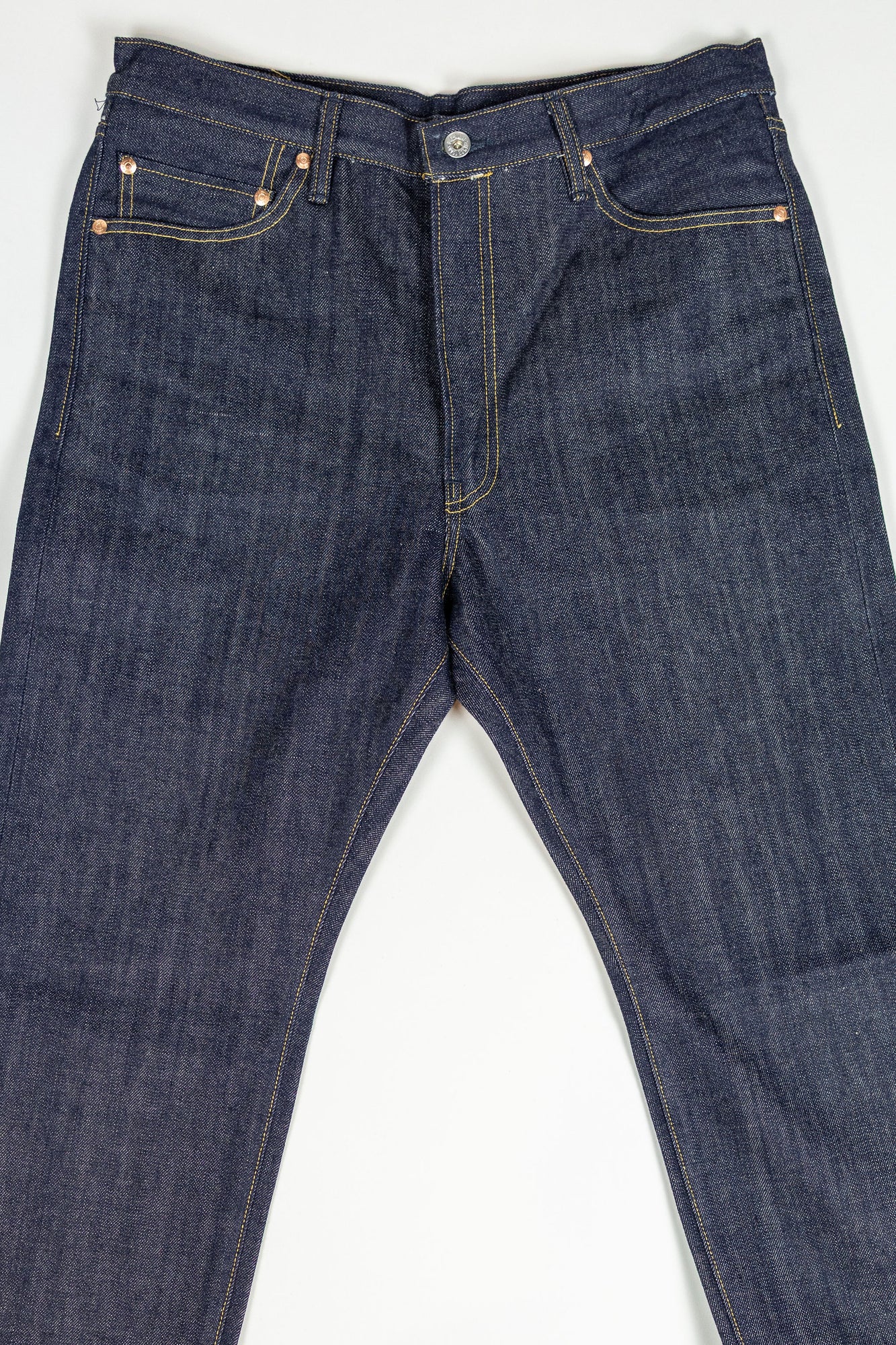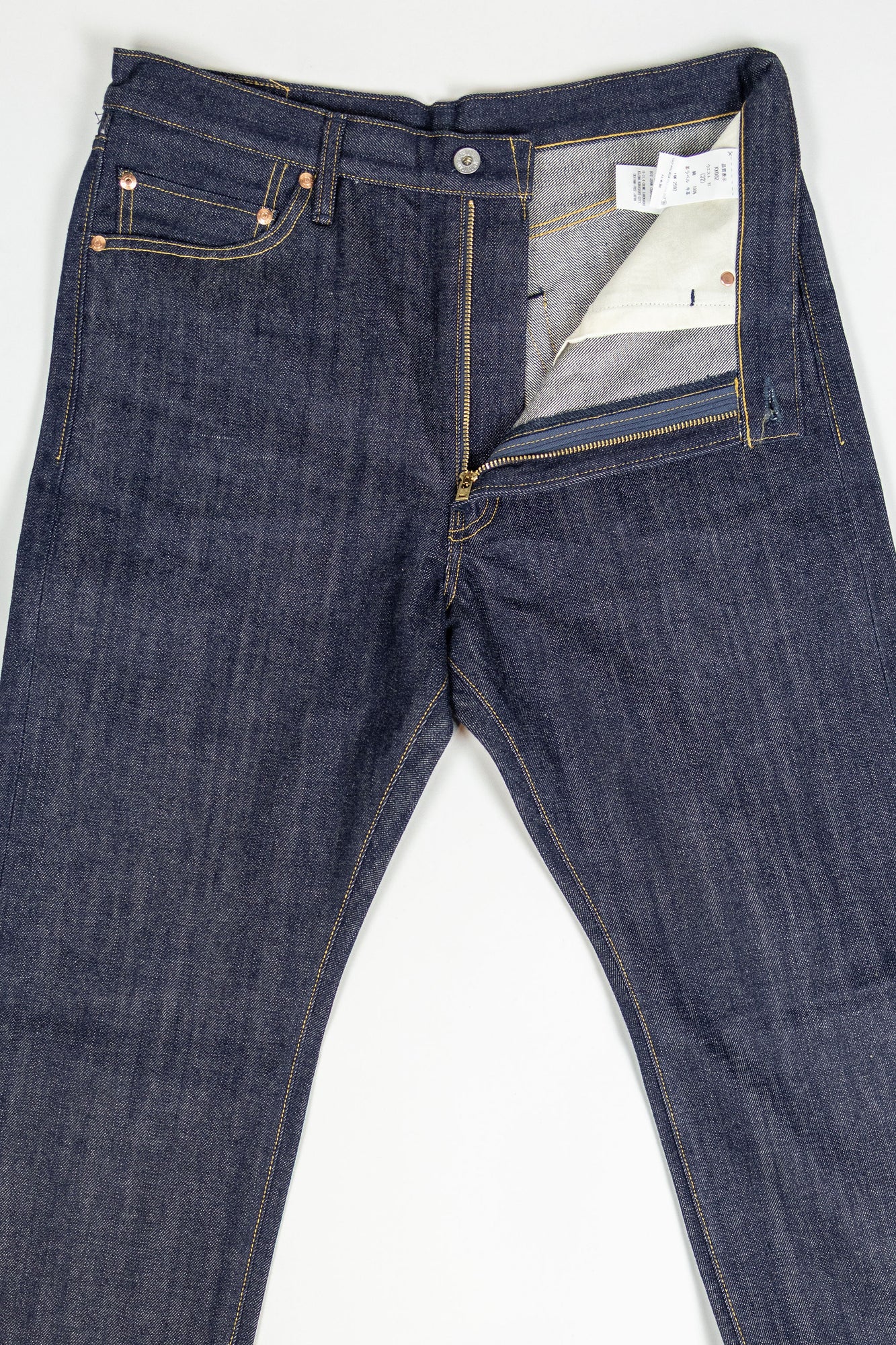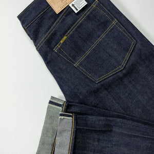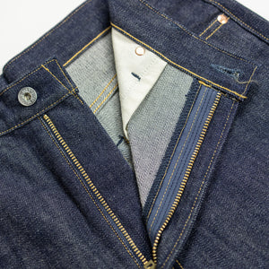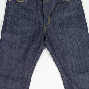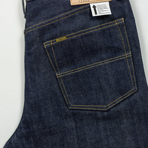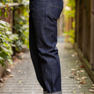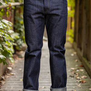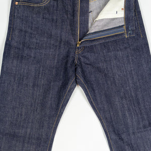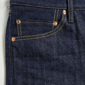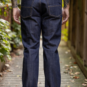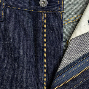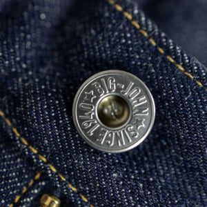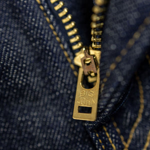The XX002 from Big John, Japan's original denim manufacturer, is a modern slim straight built from an extremely special fabric. The XX002 features Big John's XXXX-Extra denim, a 15.8oz natural-indigo fabric, woven using an organic cotton blend from five continents. The fabric has a distinctly textured hand, pleasantly slubby and hairy. The Extra denim was first introduced in the 70's, but has long been absent from the brand's catalogue. Big John revived the fabric in 2020 in honor of their 80th anniversary. Please note: these jeans are unsanforized and ~5% shrinkage is expected on the first wash, but stretch back out with wear.