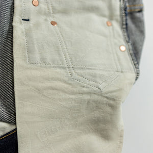 - 15.8oz unsanforized denim fabric
