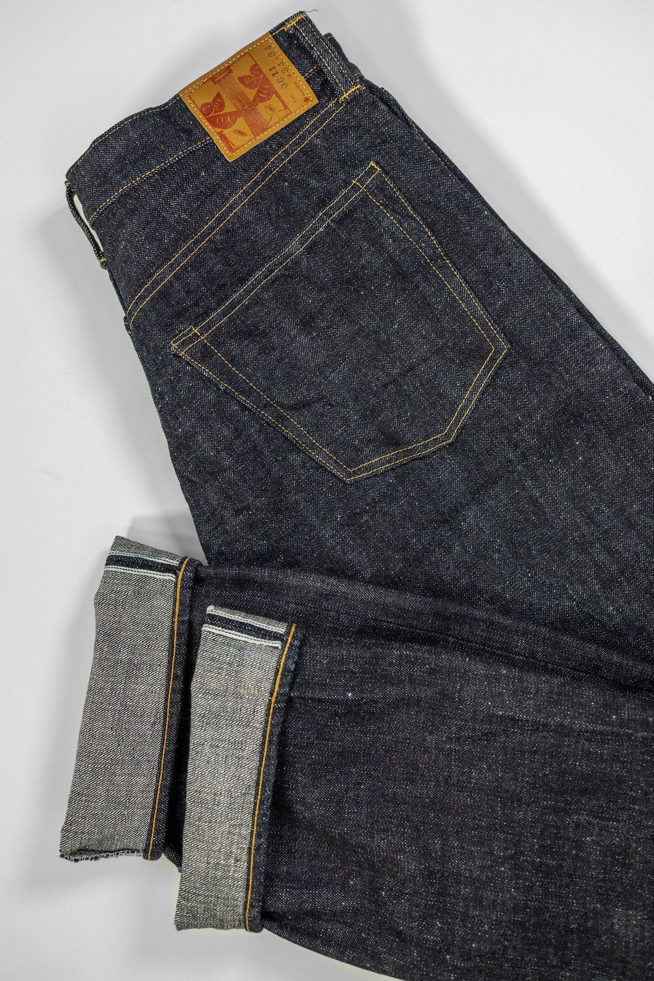 The fabric is woven using heavily textured, slubby warp yarns, and weft yarns spun from neppy recycled cotton. With good wear, you can expect seriously pronounced vertical fades. The fabric is woven on the iconic Toyoda shuttle loom at a very low warp tension, producing a rough, uneven surface with distinct visual variation. The fabric is unsanforized, with one wash to even further emphasize that great texture.
