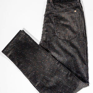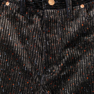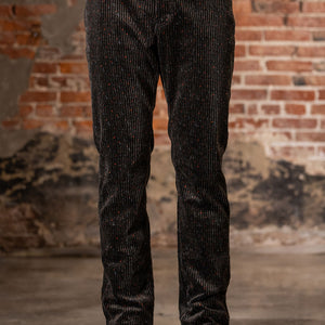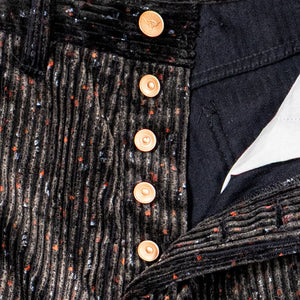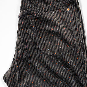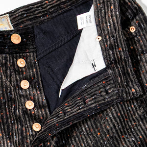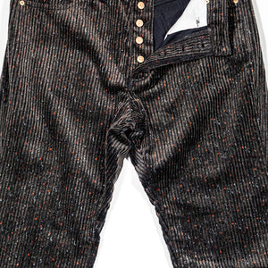 This straight 5-pocket pant is cut from a wildly unique corduroy - a special request from Wythe to a historic Italian mill that specializes only in velvets and corduroys. It's softer and beefier than what you might expect, and in the tradition of Donegal tweed, full of specks of color. Finished with raw copper rivets and shanks.