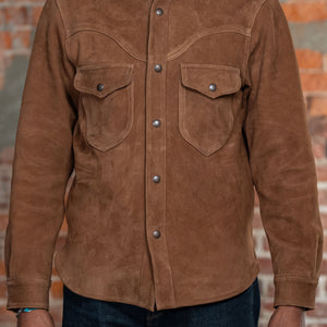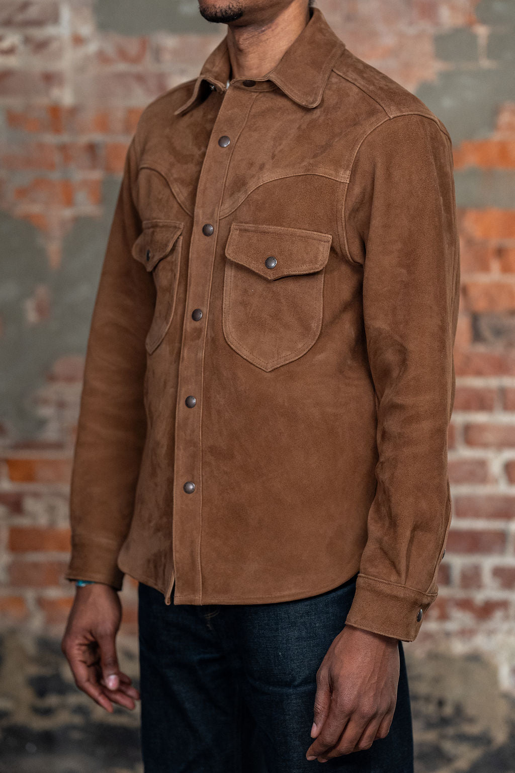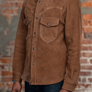 The Packard is, in our opinion, one of Freenote's most iconic pieces. A classic western shirt, with distinctive acorn pockets, done up in extremely supple leather, the Packard is effortlessly cool, and unbelievably easy to style, i.e. not just for ranch hands! This iteration is made from a custom vegetable tanned suede goatskin leather from famed UK tannery Tusting & Burnett. This leather is soft and will mold to the body with just a few wears.