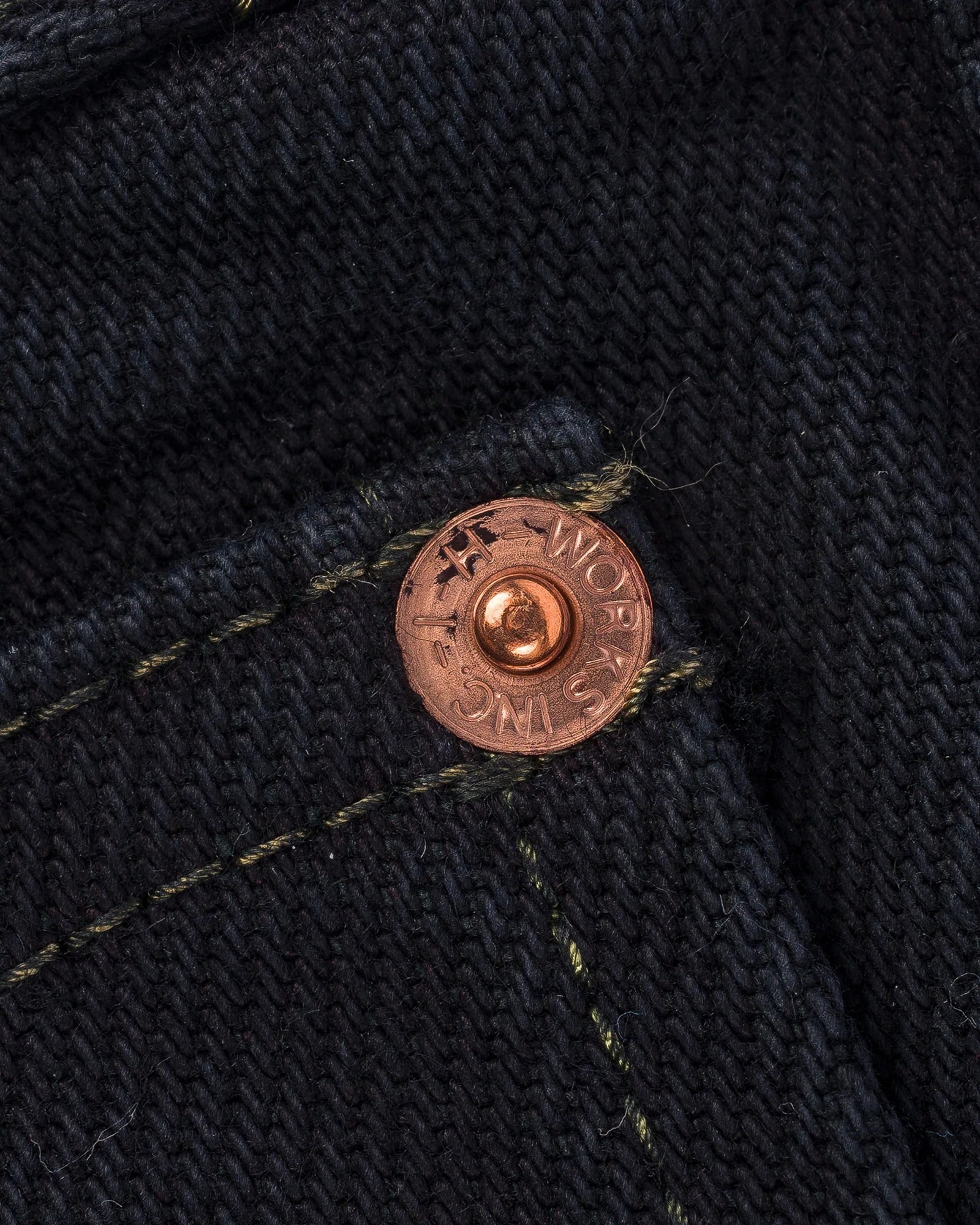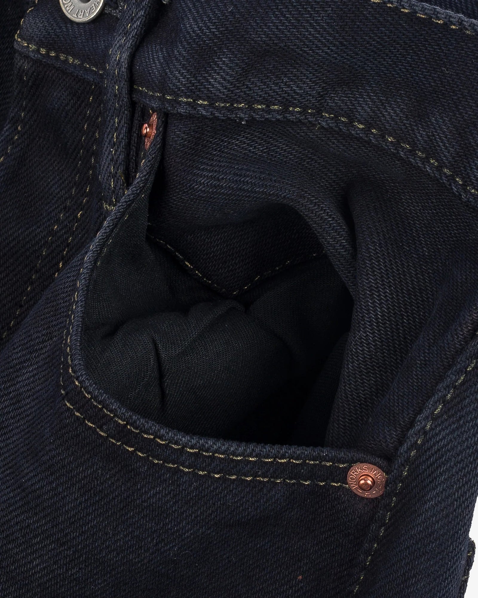- Black overdyed 21oz. indigo denim