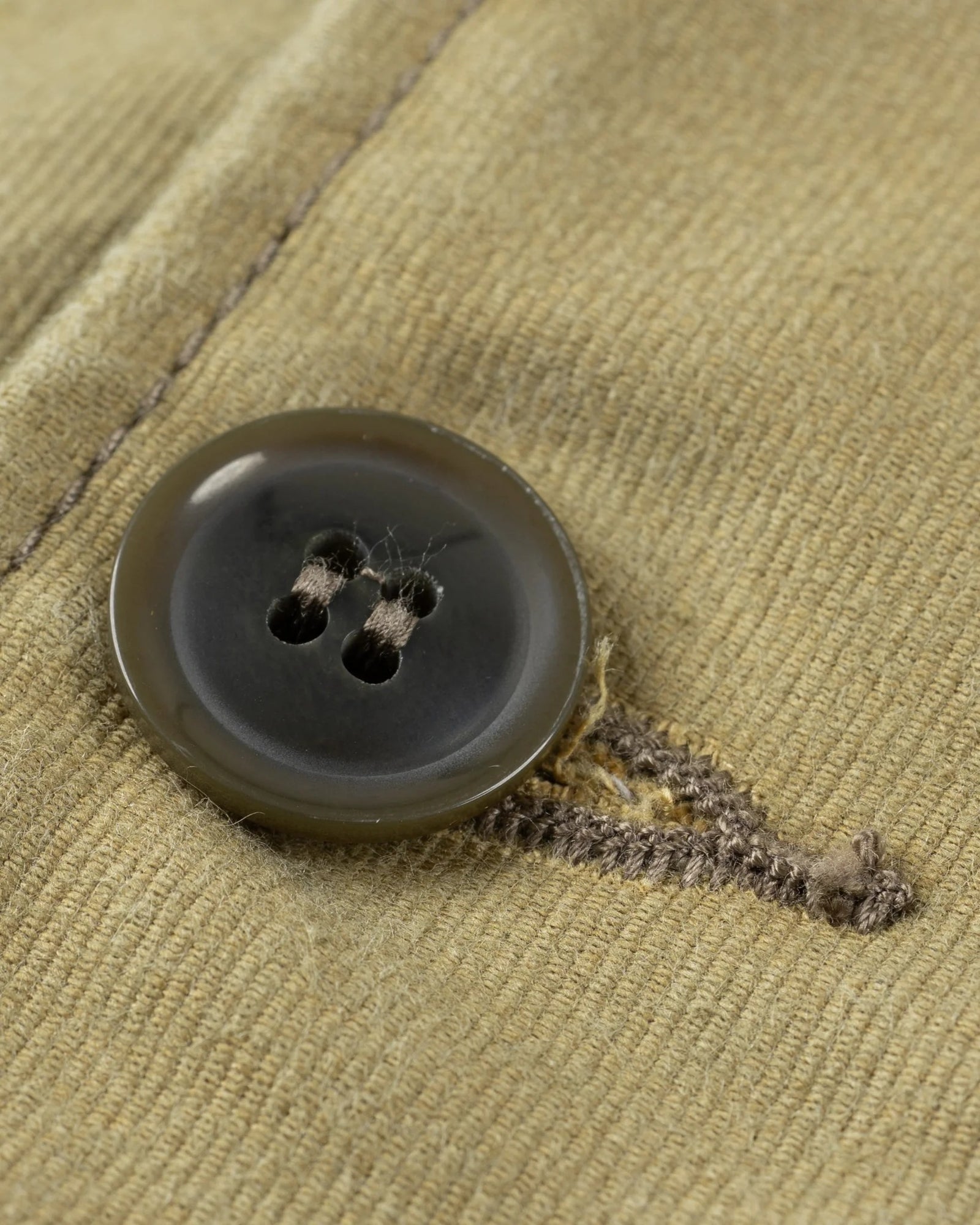 Iron Heart's N1 is an iconic reinterpretation of the classic 1940's U.S. Navy deck jacket. This version of the jacket is new for FW25, and is a lightweight counterpart to its beefy older brother. Built from a tough 12oz whipcord with sulphur-dyed yarns, the fabric develops a natural fade over time, adding character while retaining durability. Replacing the heavy wool insulation and quilted sleeves with weather-resistant Japanese Ventile cotton, the jacket is lighter, more breathable, and still offers protection from wind and rain, and a corduroy-lined collar provides a subtle visual contrast.
