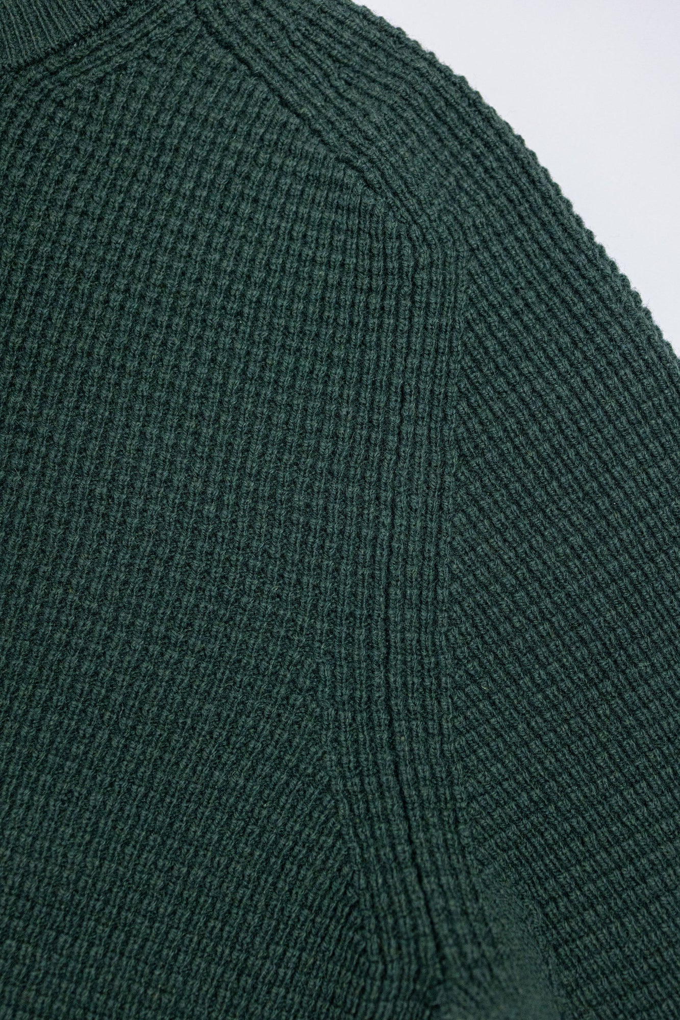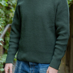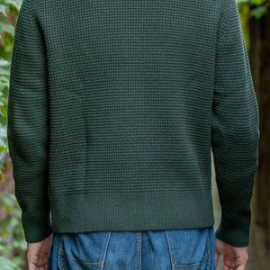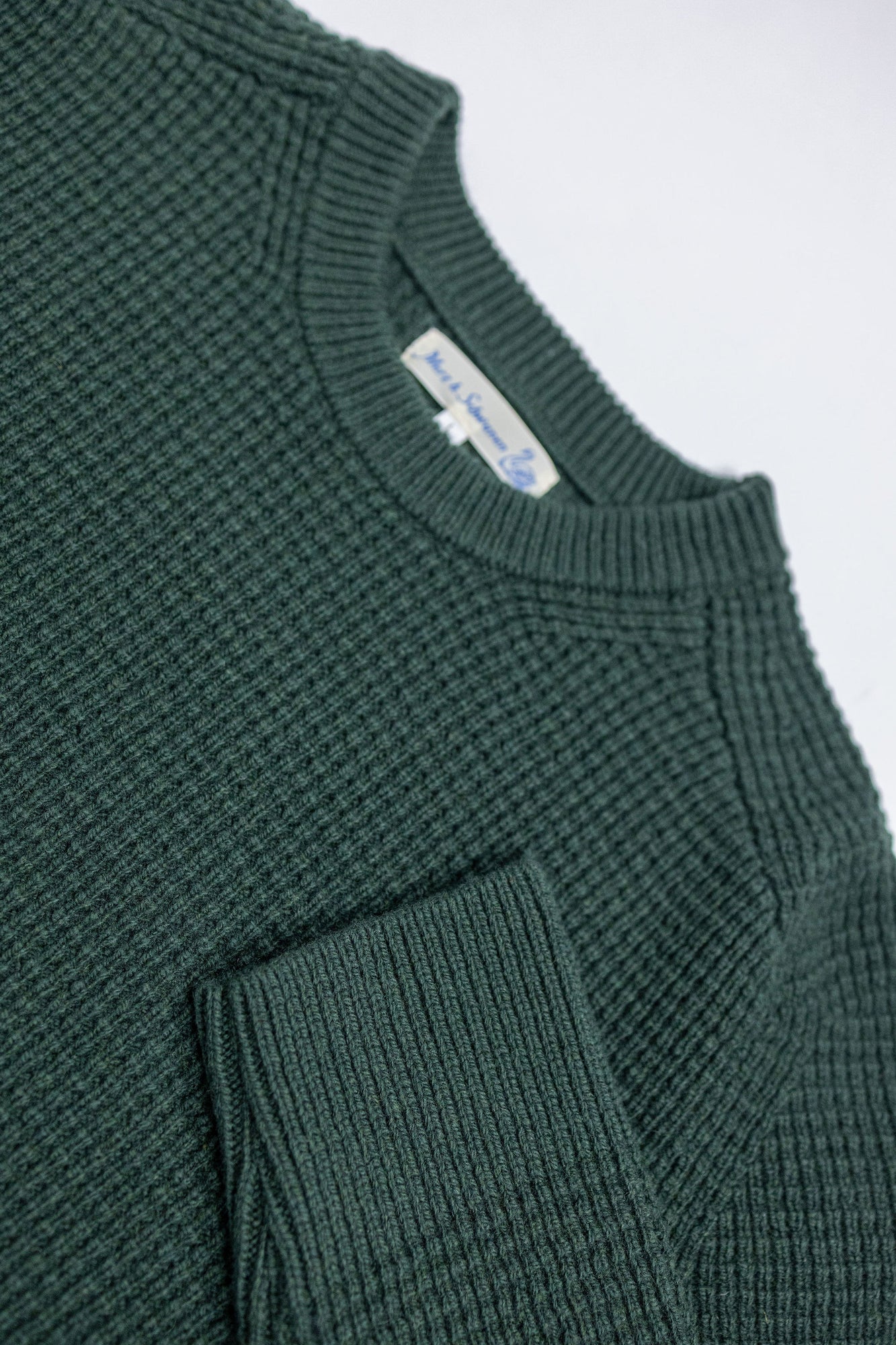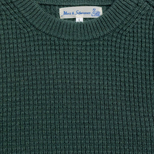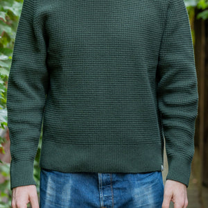 Merz b. Schwanen BLADE02 Merino Wool-Cashmere Waffle Structured Pullover - Bottle Green