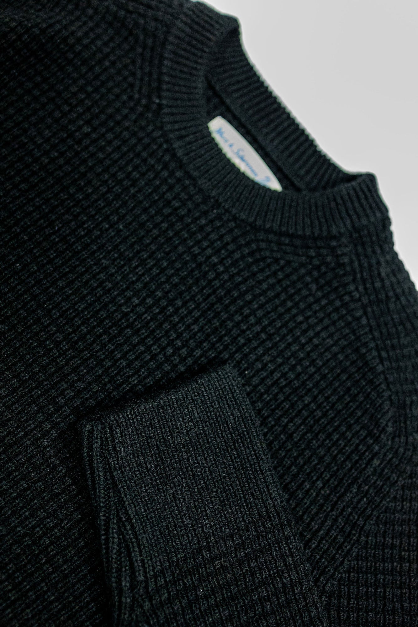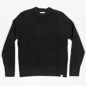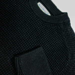 Merz b. Schwanen BLADE02 Merino Wool-Cashmere Waffle Structured Pullover - Deep Black
