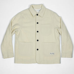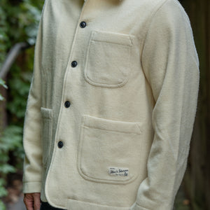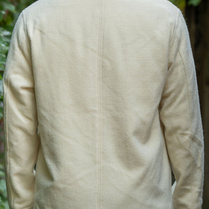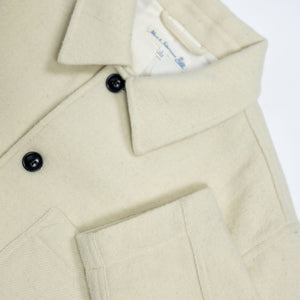 Cut from 100% Burel, the JKT05WO takes the form of a classic French work jacket. With three front patch pockets, and two internal pockets, this jacket is minimalistic but functional. The clean silhouette of the jacket allows the beauty of the Burel fabric to shine. To read more about Burel and the history of the factory, click here.