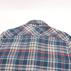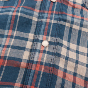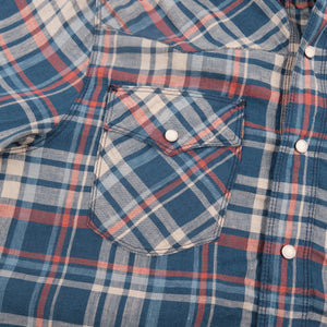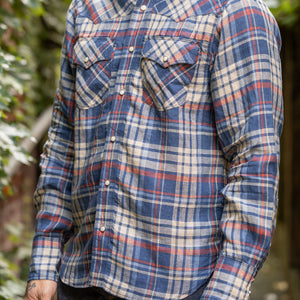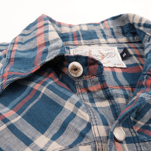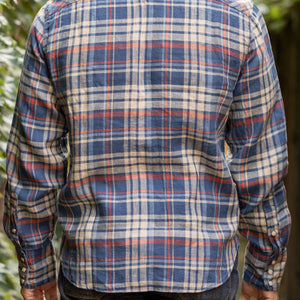 The Scout is Freenote's take on a classic workwear shirt. This version of the scout incorporates a bit of western flair with pearl snaps, barrel cuffs, and western style front and back yokes. This shirt is cut from a linen 4oz yarn dyed plaid, custom woven in Italy.