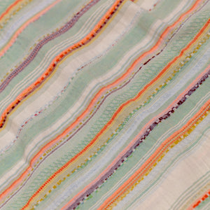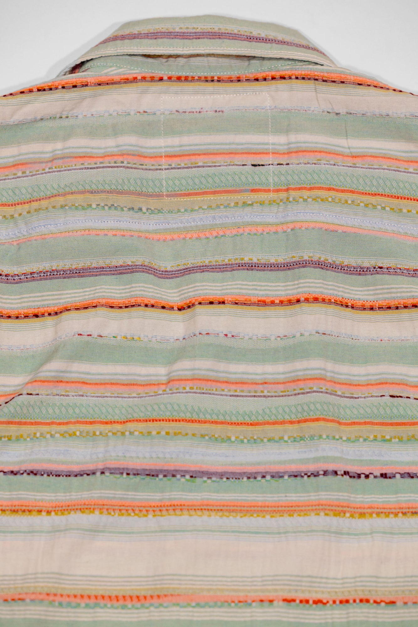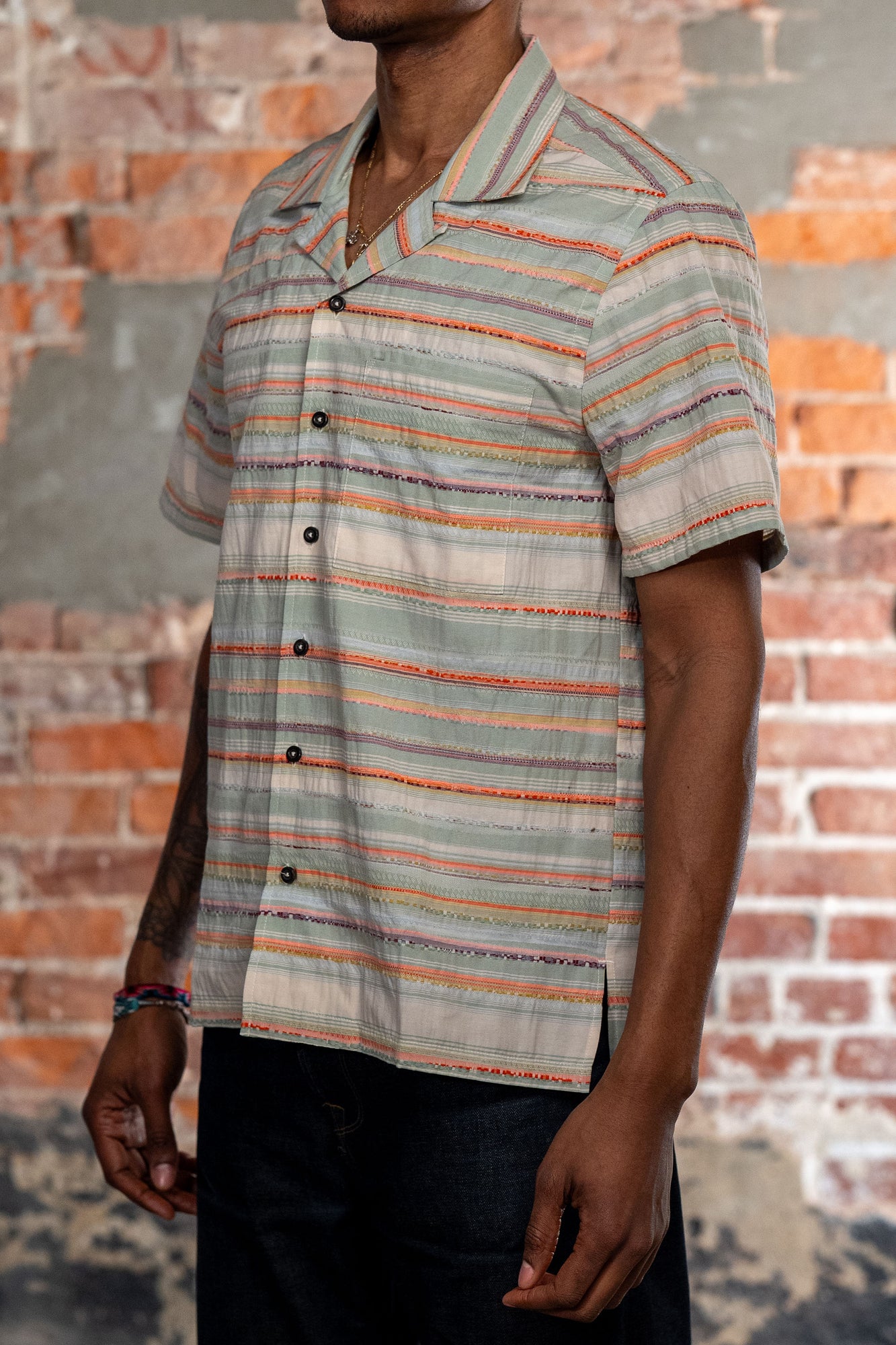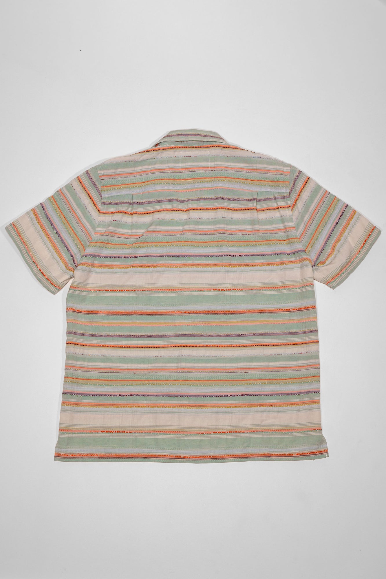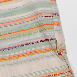 Perfect for warmer weather, the Caleb shirt from Hansen Garments is a camp collar shirt made from a zany, multi-colored multi-textured fabric. Using different yarns in various colors and textures to create a vibrant pattern, the resultant fabric is reminiscent of traditional weaving techniques. A boxy, cropped fit pairs perfectly with camp collar and care-free fabric, creating a retro, fun vibe. Elegant, french seam construction shows the elevated attention to detail that Hansen gives to all of their pieces.