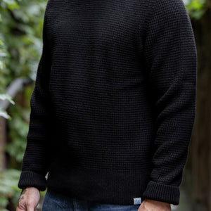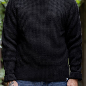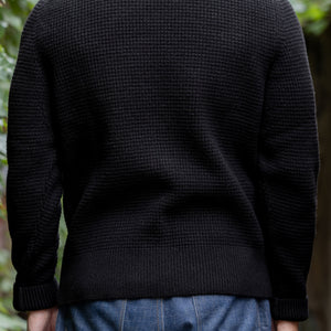 Merz b. Schwanen BLADE02 Merino Wool-Cashmere Waffle Structured Pullover - Deep Black