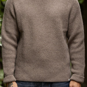 Merz b. Schwanen BLADE02 Merino Wool-Cashmere Waffle Structured Pullover - Grain