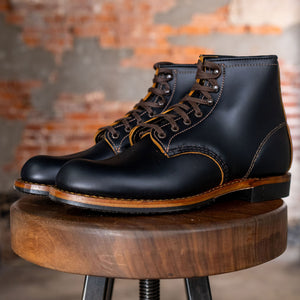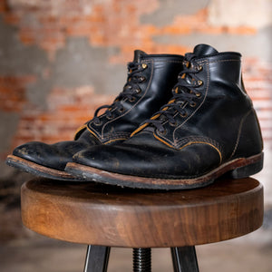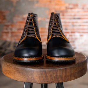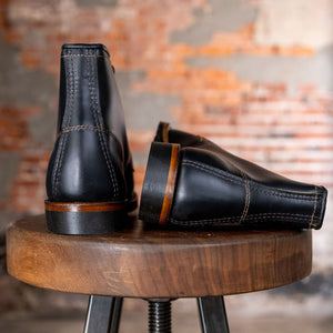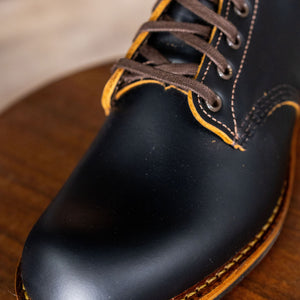 The Red Wing 9060 Flat Toe Beckman Boot is back! A part of the Beckman Collection (eponymously named after the founder of Red Wing, Charles Beckman), the 9060 features what some consider to be Red Wing's best leather: The Black Klondike. It's a tea core leather, where the leather is dyed brown and then over-dyed with black. As the boot breaks and wears in, the brown leather will peek through creating a truly unique and beautiful look.