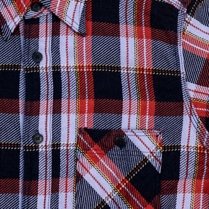 A cross between a denim work shirt and a flannel, Samurais rope-dyed flannels are cut from a specialized fabric with fading in mind. The fabric is a weave of indigo rope-dyed threads and reactive dyed color threads, which will fade over time just like a pair of jeans! The fabric and construction is substantial enough for real wear, beefed up with triple needle seams and reinforced elbows.