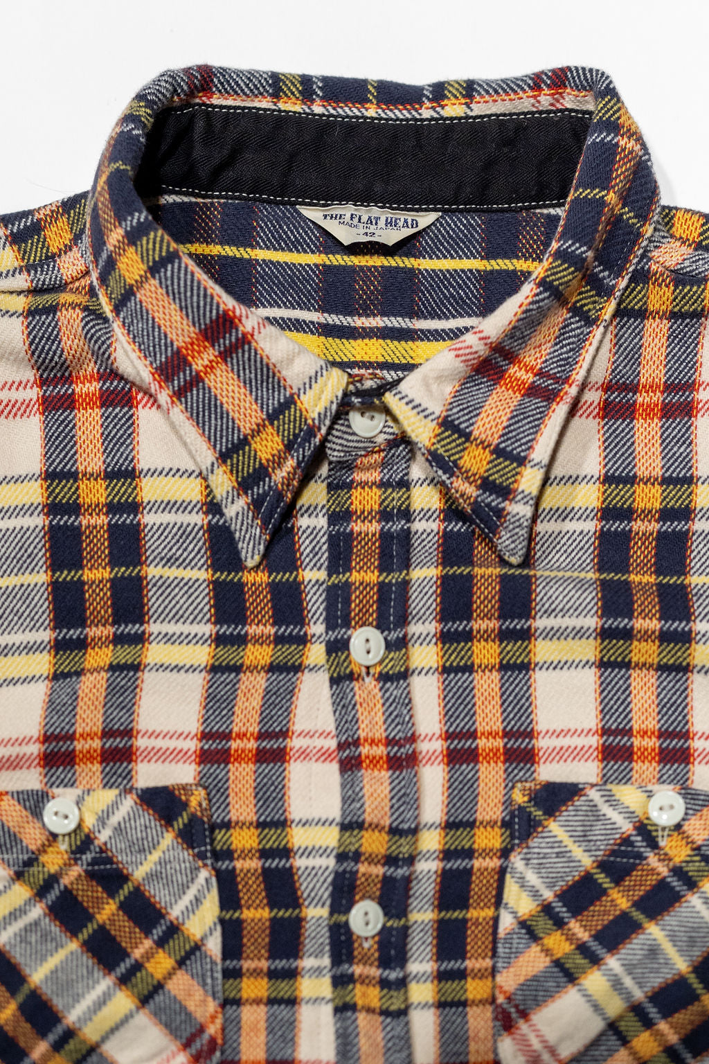 The Flat Head FN-SNW-014L Check Flannel Work Shirt - Ivory/Black