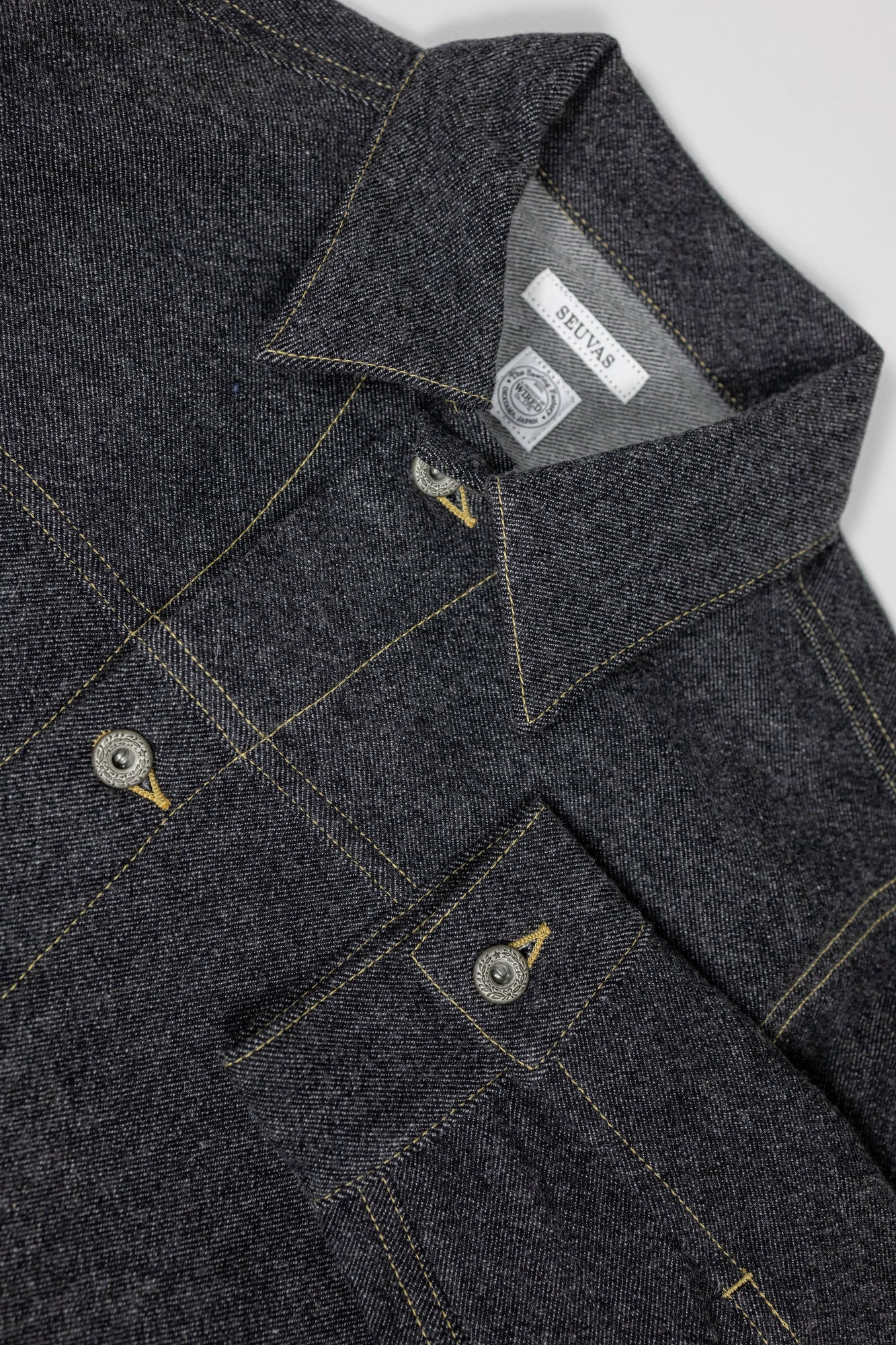 One of the more unique denim jackets we've ever seen, Seuvas' C/W Denim Trucker Jacket takes the form of a classic Type II jacket but cut from an extremely distinct cotton/wool denim. The fabric has a noticeably soft and warm feel, with a striking visual texture that sets it apart from the crowd.