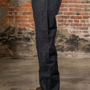 Sugar Cane's 1947 denim is as close of a reproduction of the Levi's iconic 1947 501s as there is right now. The brand modeled the fit, fabric, hardware, and construction off a vintage pair of '47 501s. This fit is high waisted with a full straight leg and features a period accurate 14.25oz denim weight, button fly, hidden rivets, and selvedge coin pocket. This version features a black warp and natural weft.