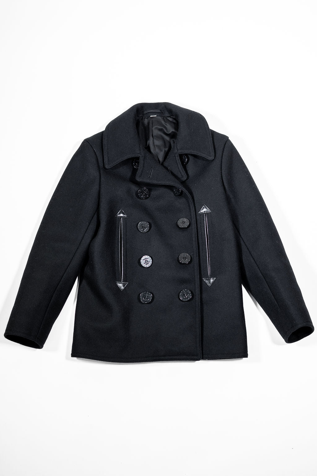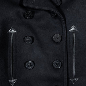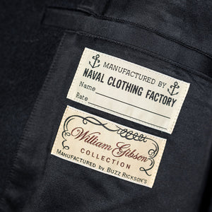 This highly special, anachronistic, version of the Pea Coat is part of Buzz Rickson's' William Gibson collection. The William Gibson pieces are blacked out versions of Buzz classics, paying homage to Gibson's novel Pattern Recognition.
