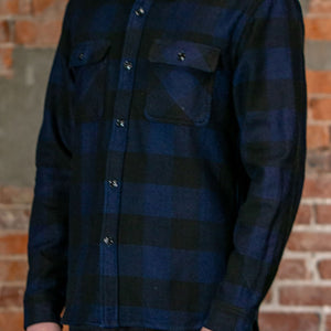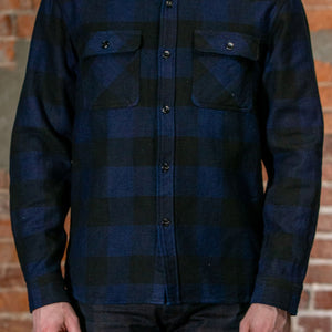 The Flat Head FN-SNR-101SP Block Check Flannel Work Shirt - Indigo
