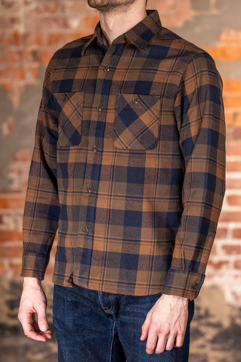 Sugar Cane Lot No. SC29558 Twill Check Work Shirt - Brown