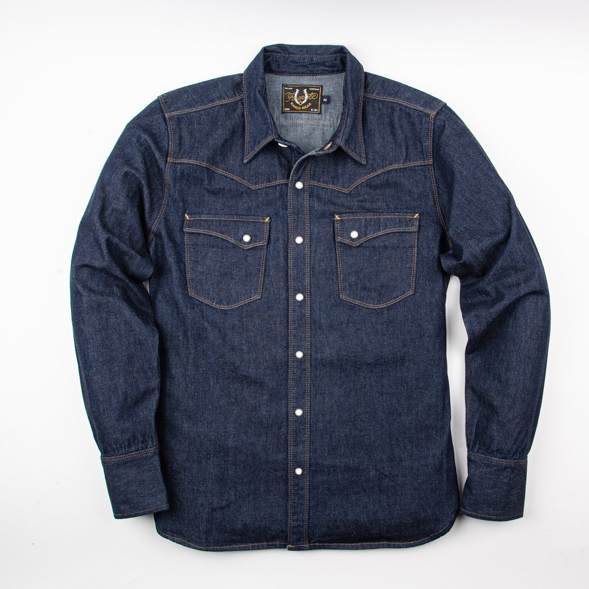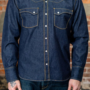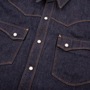 The Freenote Calico is an updated sawtooth western shirt. They've reduced the pocket to one tooth and curved out the back yoke for a western look that we can rock even without boots and spurs.  Cut from a 9oz Japanese denim, this is a heavier, more sturdy version of the Calico, ready for cooler weather and dying to be broken in.