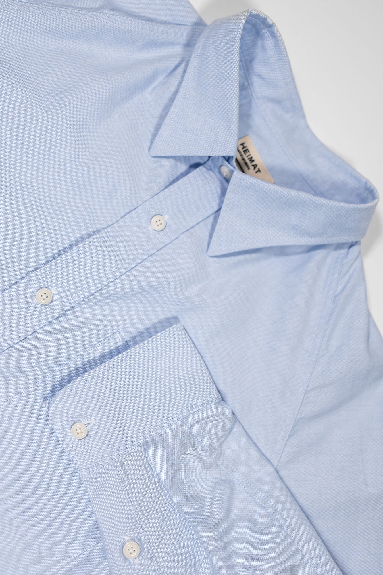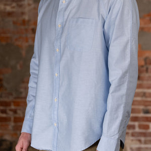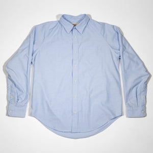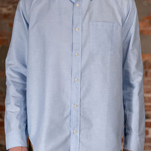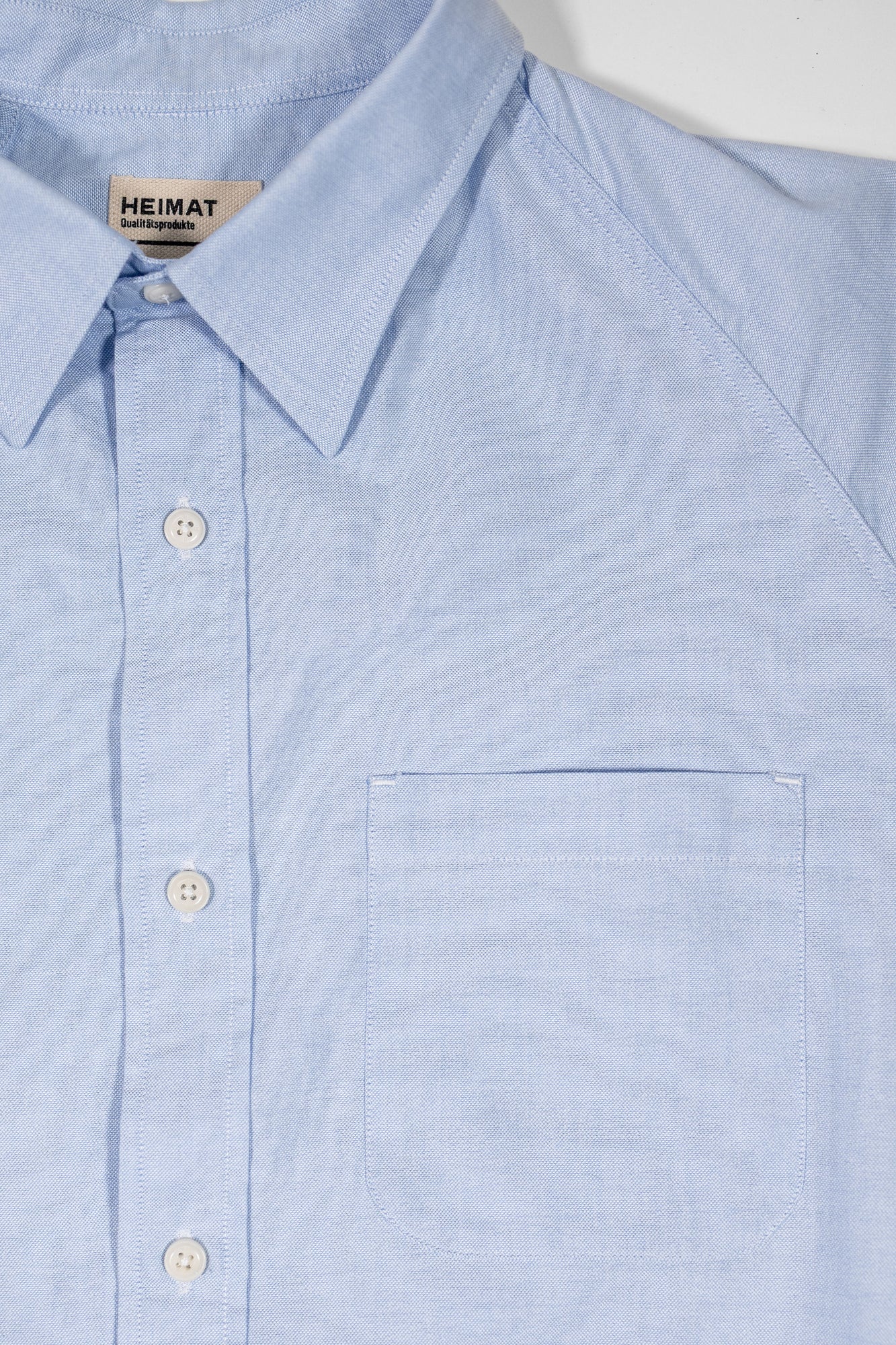 Heimat's Artist Shirt is a unique twist on a traditional preppy staple, the oxford collar button-up. The shirt features raglan sleeves for ease of sizing and a more relaxed fit, giving you a casual, effortlessly cool look. The fabric is a basket weave, which is thicker, breathable, and retains its structure. Stitch details underneath the collar and cuffs provide the shirt with extra strength.