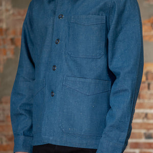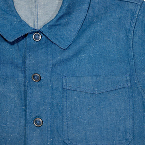 3sixteen’s version of French workwear's most iconic garment, the French Work Jacket is faithful to the original, down to the smallest detail. The jacket features a slightly rounded collar, and three outer pockets and one internal pocket. This season's version of the jacket is cut from a heavyweight Japanese denim woven with extremely neppy, light indigo yarns. The fabric starts soft, but hefty, and will continue to break in beautifully over time with wear and wash.