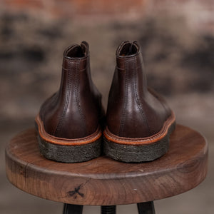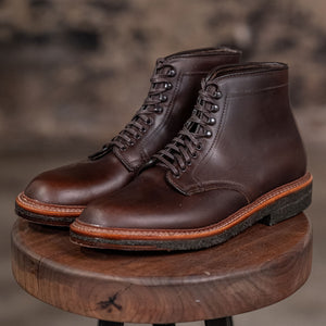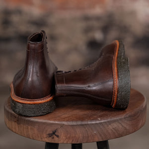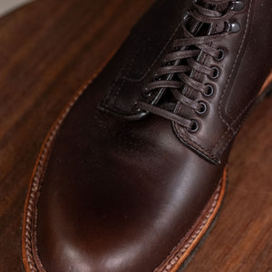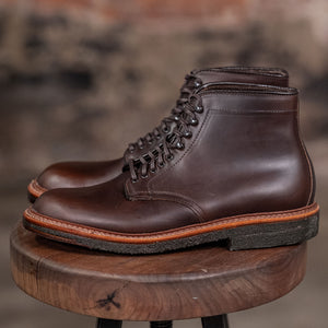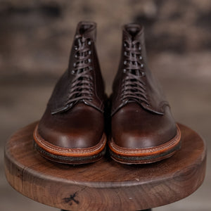 The 86062H Plain Toe Boot was one of the unique make-ups that first made us fall in love with Alden over a decade ago, and we are thrilled to finally offer this iconic style at F&P! Effortlessly casual and rugged, combined with Alden’s sophistication, the Plain Toe is an exemplary choice for a go-to, everyday boot that will only look better the more you beat it up. Built from brown Chromexcel this version of the boot features tonal eyelets and speedhooks, a 360 degree pre-stitched reverse antique welt, and crepe sole. The boot is built on the brand's Trubalance last, a comfortable last which offers a roomy toe-box and is suitable for most shapes of foot.