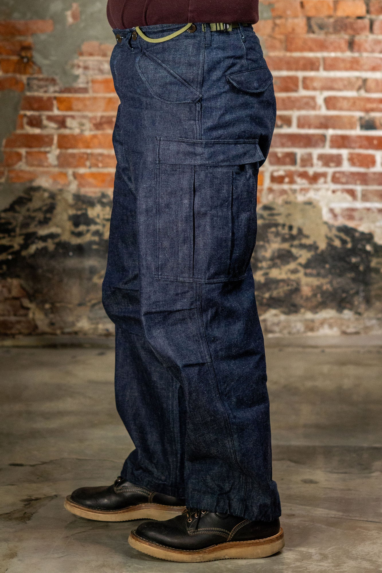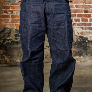 This unique, anachronistic, version of the M-1951s are cut from a thick indigo denim rather than historically accurate cotton sateen.
