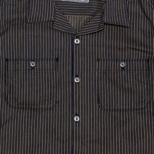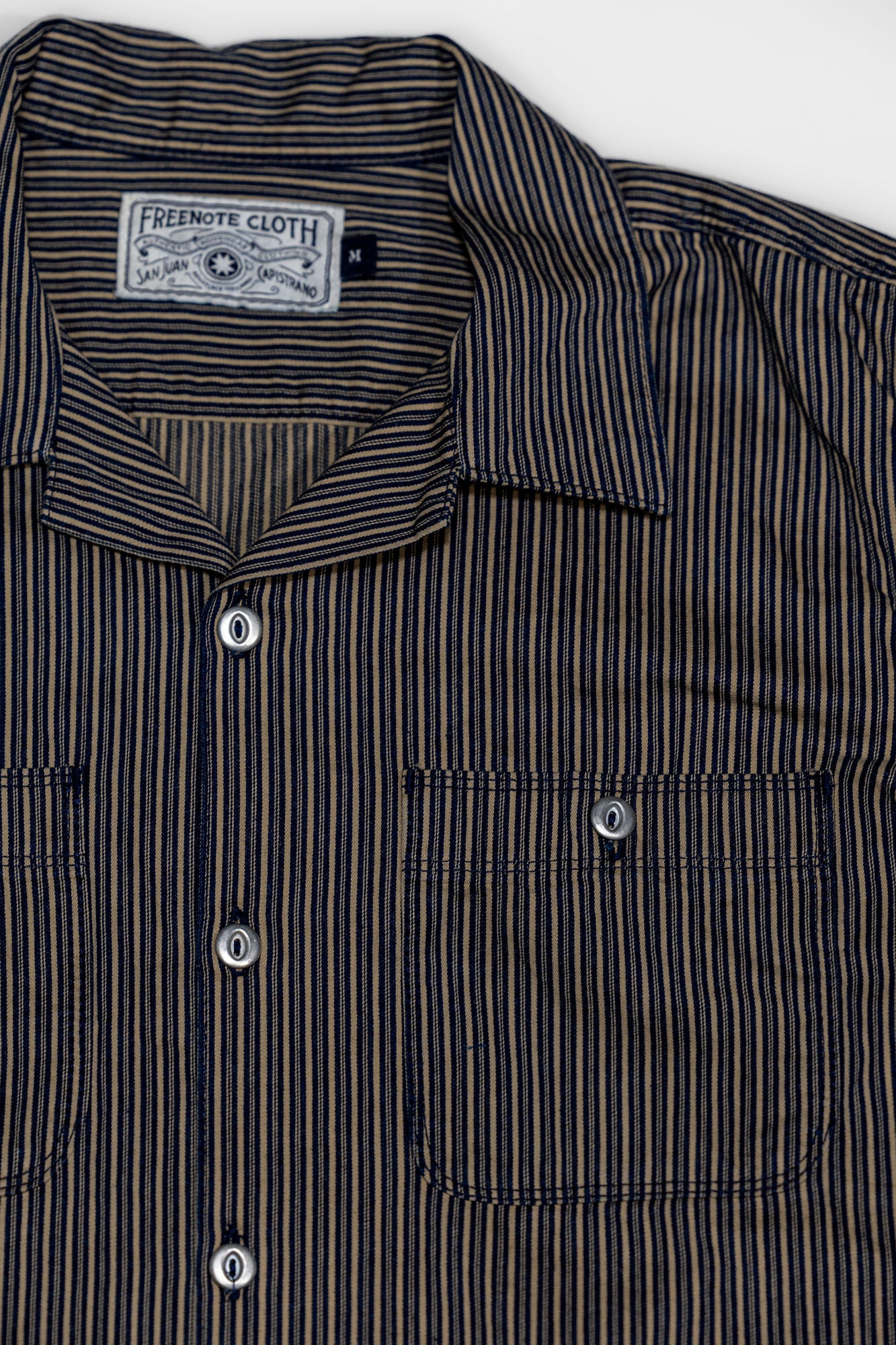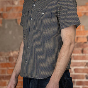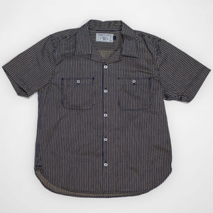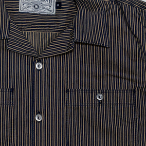 A Freenote classic, the Dayton is a garage style short sleeve shirt from Freenote featuring two chest pockets and a camp collar. This version of the Dayton comes in a custom 7oz indigo stripe from Japan, the same fabric used for the pocket bags on some of the brand's jeans.