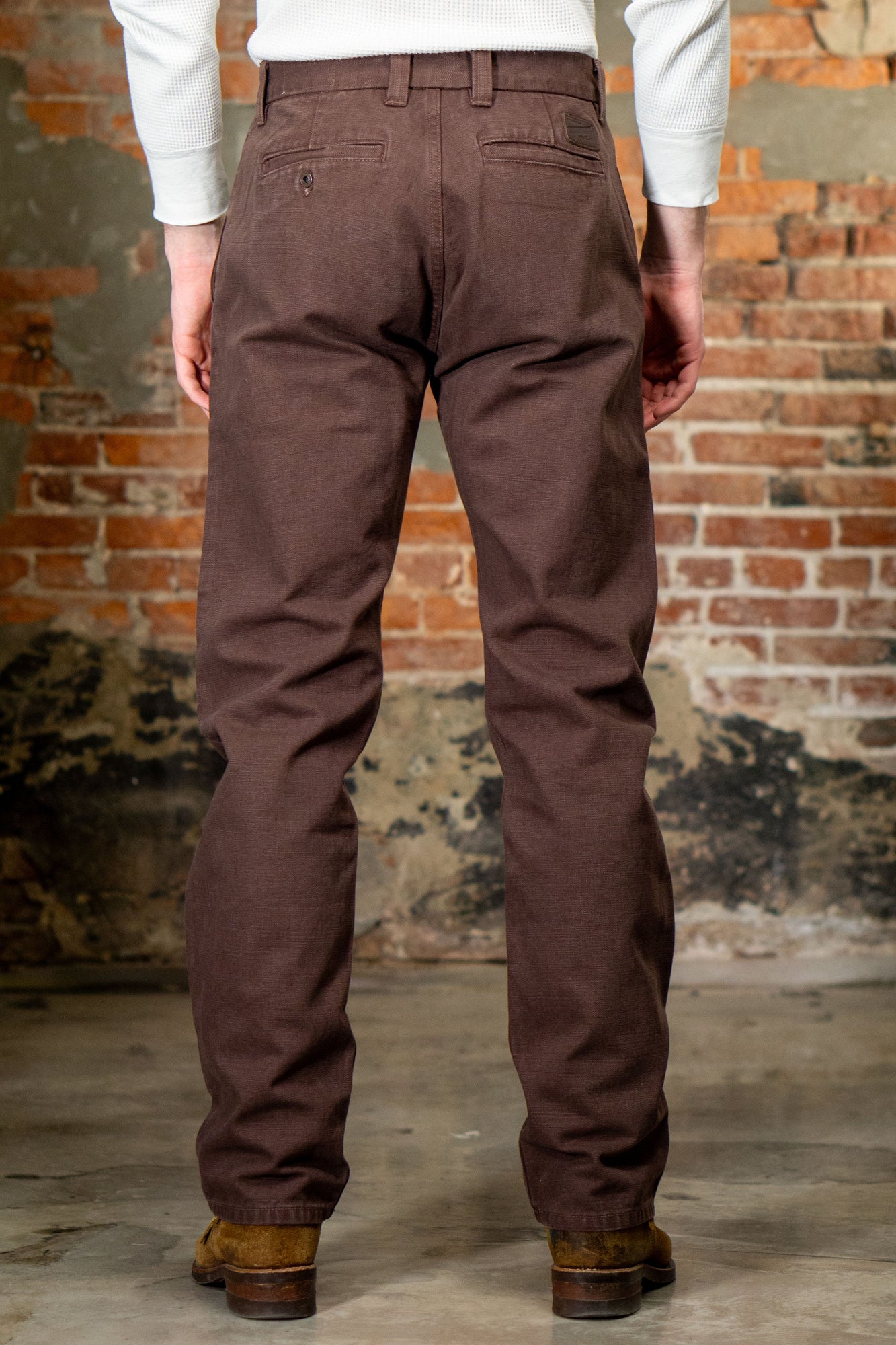The Freenote Cloth Deck Pant is a relaxed chino with a high rise and a relaxed seat in the top block and a wider open leg opening at the bottom for a straight fit. Made from a sturdy 14oz oxford weave from Japan, the fabric has a nicely textured hand and is substantial enough to take a real beating.