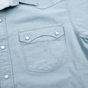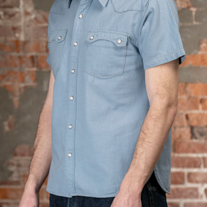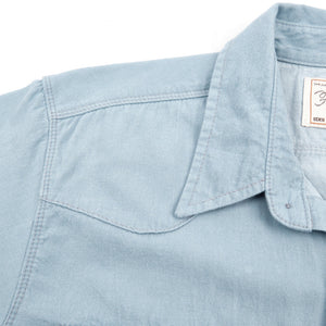 The Modern Western is one of our favorite Freenote shirts. It's a western shirt with rounded yoke and pocket edges, making it friendly for everyday wear. The fabric is 6oz bleached chambray from Japan, light enough to be worn on its own in warmer weather but substantial enough to make a great layering piece.