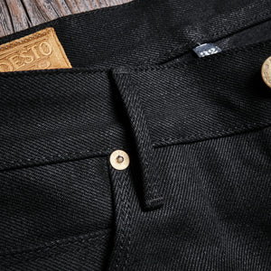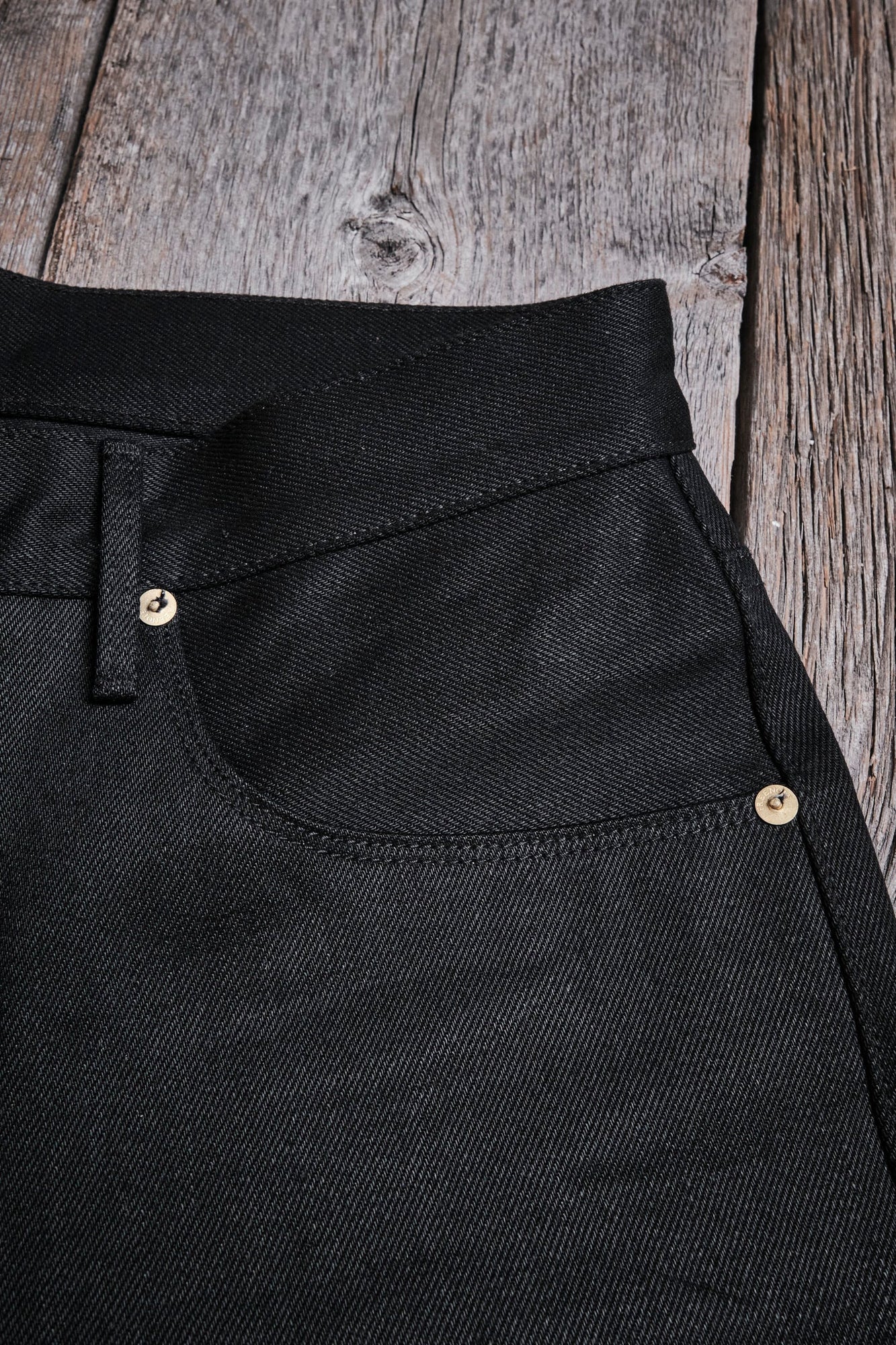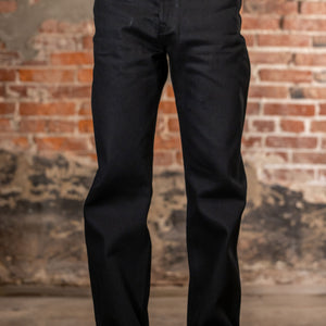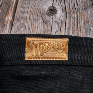 The Modesto takes us back to the early days of denim as workwear, sporting a high rise and roomy straight leg. This version of the Modesto is cut from a 15.75oz double black denim from Japan's Kaihara Mills. Custom developed for Freenote, this limited fabric is part of Freenote's Aces High collection and is finished with brass hardware and gold selvedge IDs.