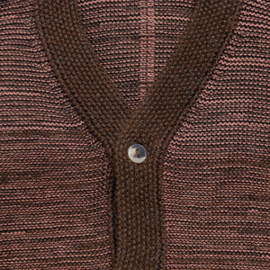The Ren Cardigan is a show-stopping piece from Indi + Ash, and demonstrates the intricate craftsmanship of the brand's artisan partners. These sweaters are inspired by antique Japanese saki-oro Hanten, which are old farmers coats made from repurposed and rewoven textiles. The yarns consist of undyed alpaca and cotton yarns, interwoven with logwood and clay dyed yarns. In the back the panels are linked together with a hand embroidered blanket stitch. Finally, the Ren is finished with three real horn buttons.