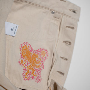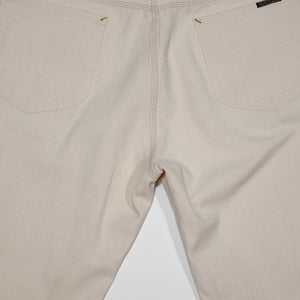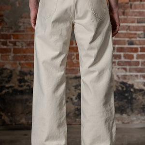 The Duke is the newest addition to Indigofera's lineup, and the widest cut we've currently got in the shop! A true wide leg, with a high rise, the Dukes feature old school workwear details that pay homage to vintage Lee jeans. The Dukes sport triple needle contrast thread construction, large acorn shaped back pockets, and bar tack reinforcements. This version of the Duke is cut from Indigofera's 13oz Smithson canvas, a comfortable and durable fabric that only looks better the worse you treat it.