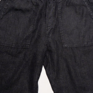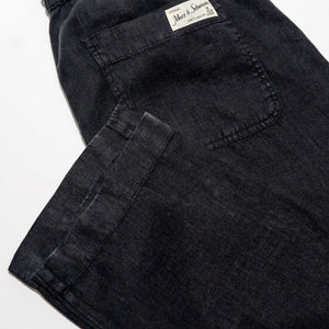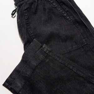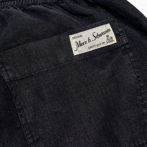 Merz b. Schwanen PANTS05LI Linen Workers Drawstring Pants - Deep Black