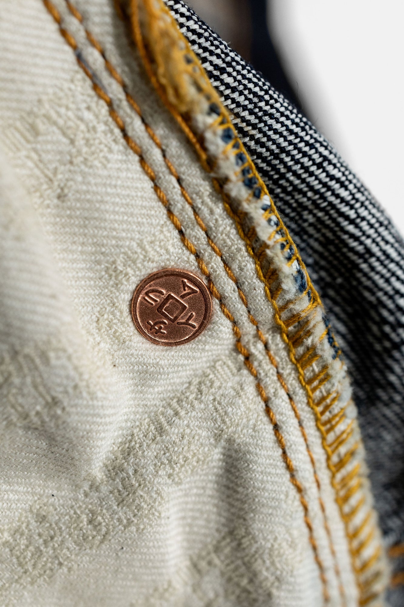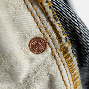 One of Samurai's all time most popular models, the 710 is a dialed-in, modern slim straight cut, with a comfortably fitted top block and gradual taper through the leg. This highly special version of the 710 is cut from Samurai's new 15oz Washi denim. As the name suggests, this fabric is woven with weft yarns that are a mix of cotton and washi paper. A traditional form of paper making dating back over 1200 years, washi is renowned for its lightweight strength. The washi-cotton yarns are combined with original Samurai extra long staple warp yarns to create a fabric with an almost silky, airy hand, and notable shine.