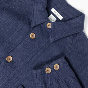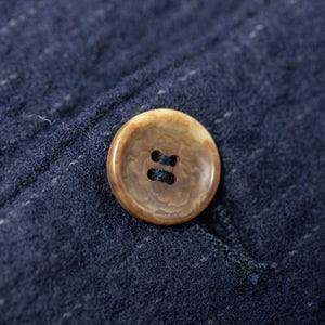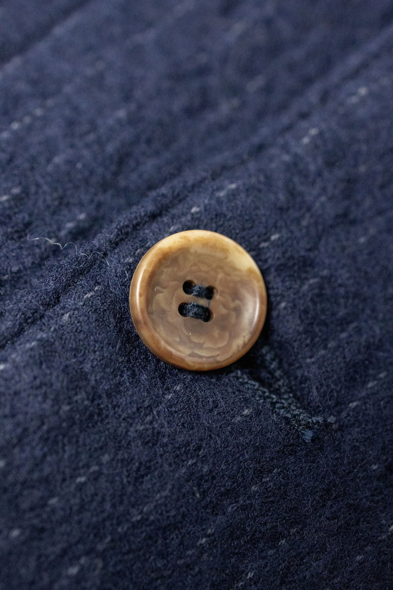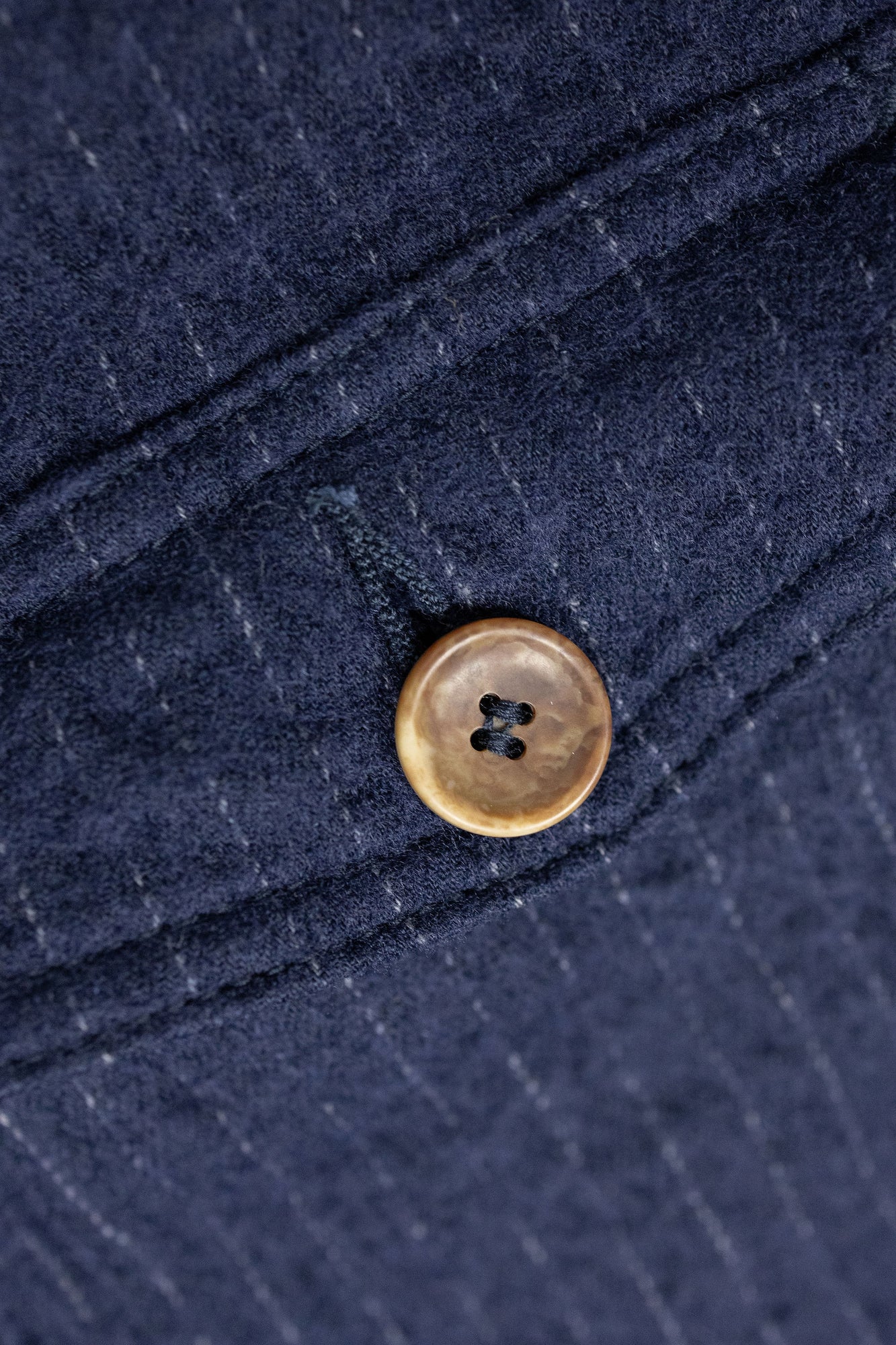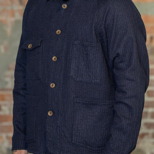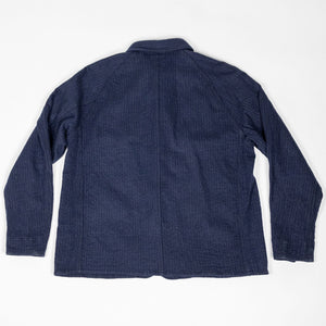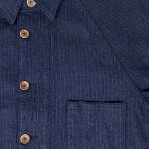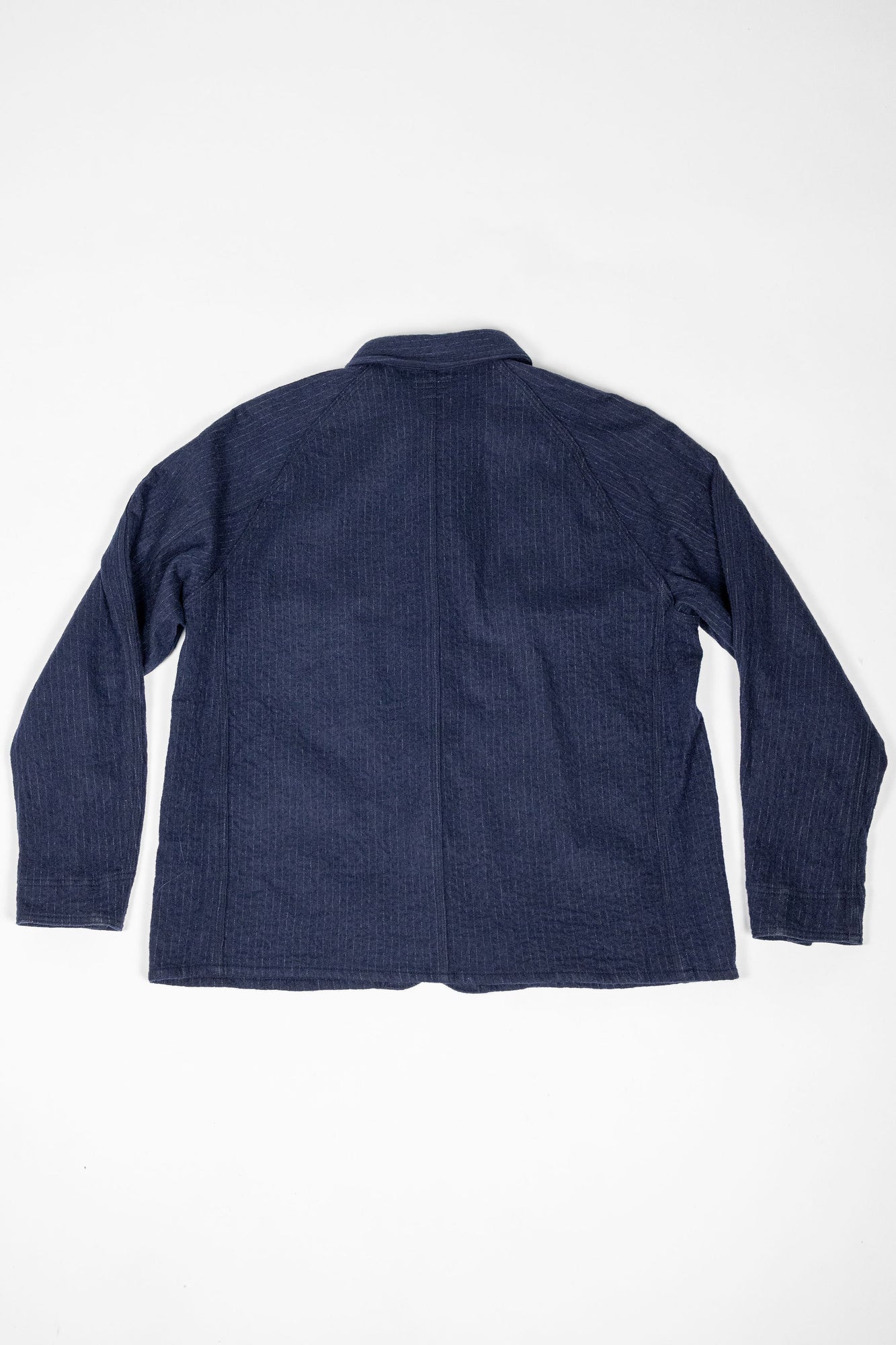 Ready for fall and winter, this coverall from Seuvas is cut from a soft and warm cotton/wool fabric, an ideal choice for any cold weather occasion.Showing off the simplicity and beauty of the material, this coverall features a classic silhouette inspired by vintage chore jackets, with an updated triple stitched raglan sleeve construction. The fabric features a subtle pinstripe pattern that adds texture and visual intrigue.