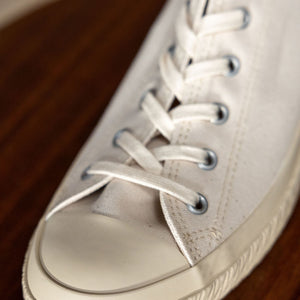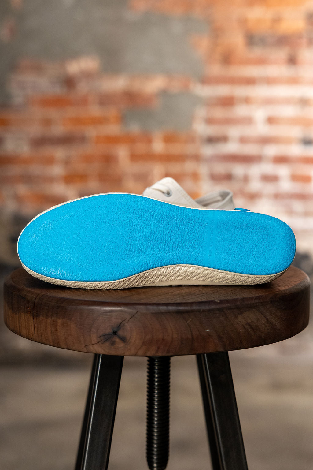 The Shoes Like Pottery Low Top Sneakers are as understated as they are beautiful. Their beauty lies not in flashy colors or trendy materials, but in the handmade construction of every pair. The canvas upper is sewn together then glued to the outsole with a tape made of natural rubber in a process that can't be done by machine. It must be done by hand. Once the upper is cemented to the outsole, the whole shoe is fired in a kiln for 70 minutes in a process known as ka-ryu. This process causes the sulfur in the outsole to react, returning the natural rubber to its original state and creating an outsole that is soft, flexible and durable. This process is very similar to how Japanese pottery is made and the result is a simple, timeless sneaker that will last for years.